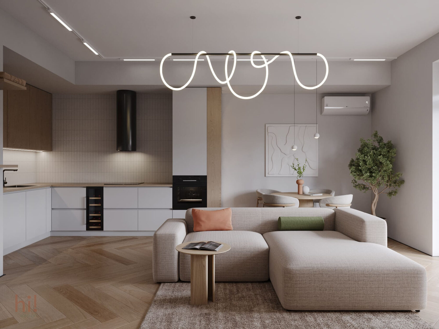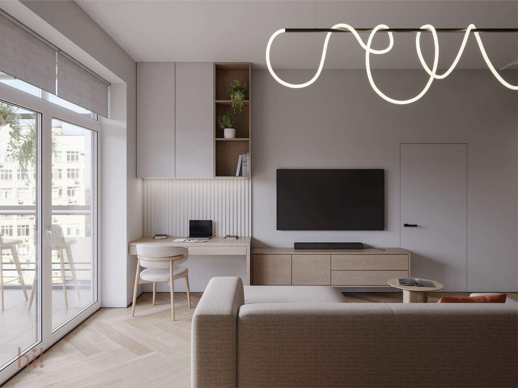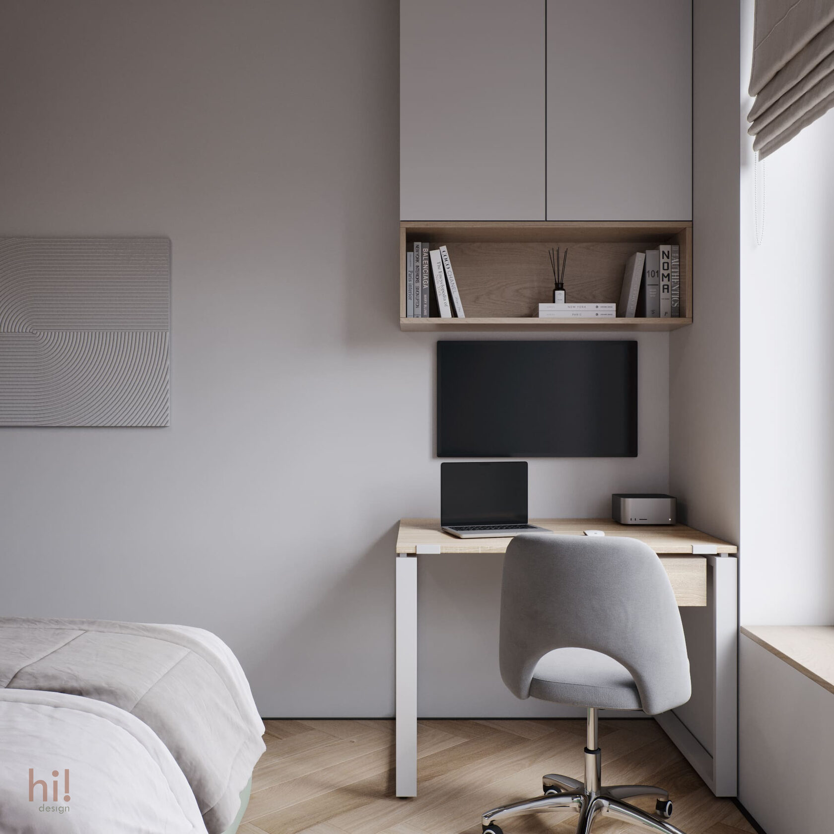 Светлая квартира в современном стиле, для семьи с удаленной работой обоих родителей,