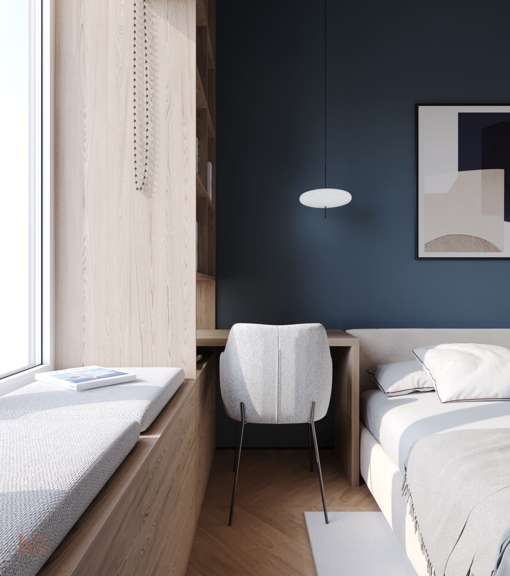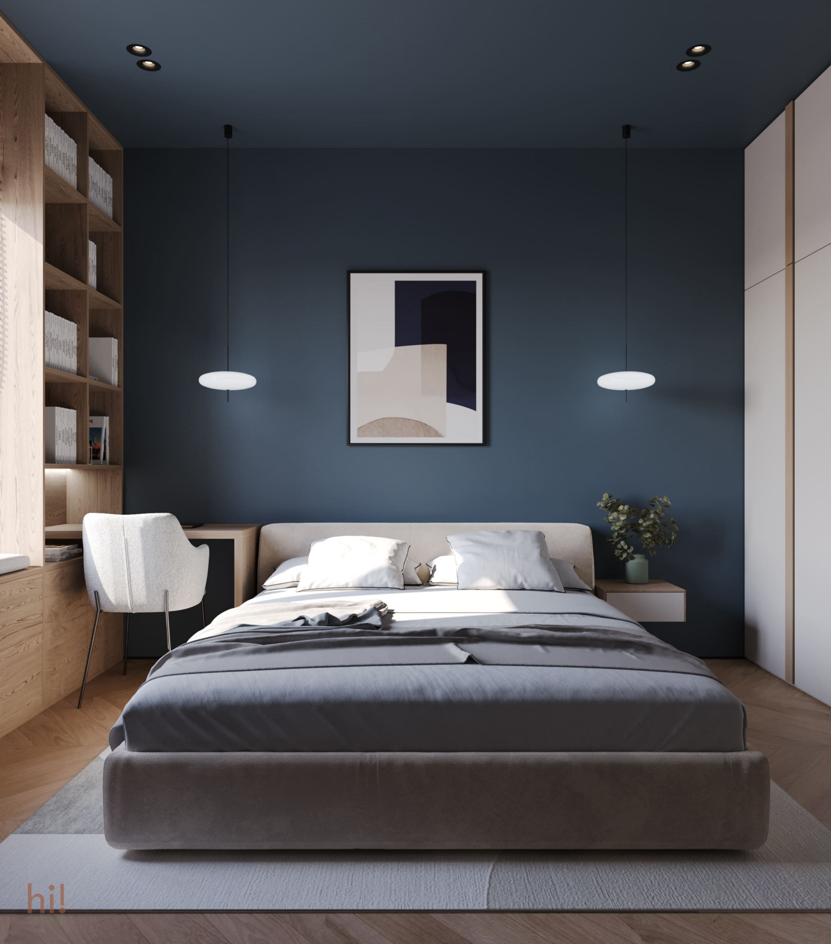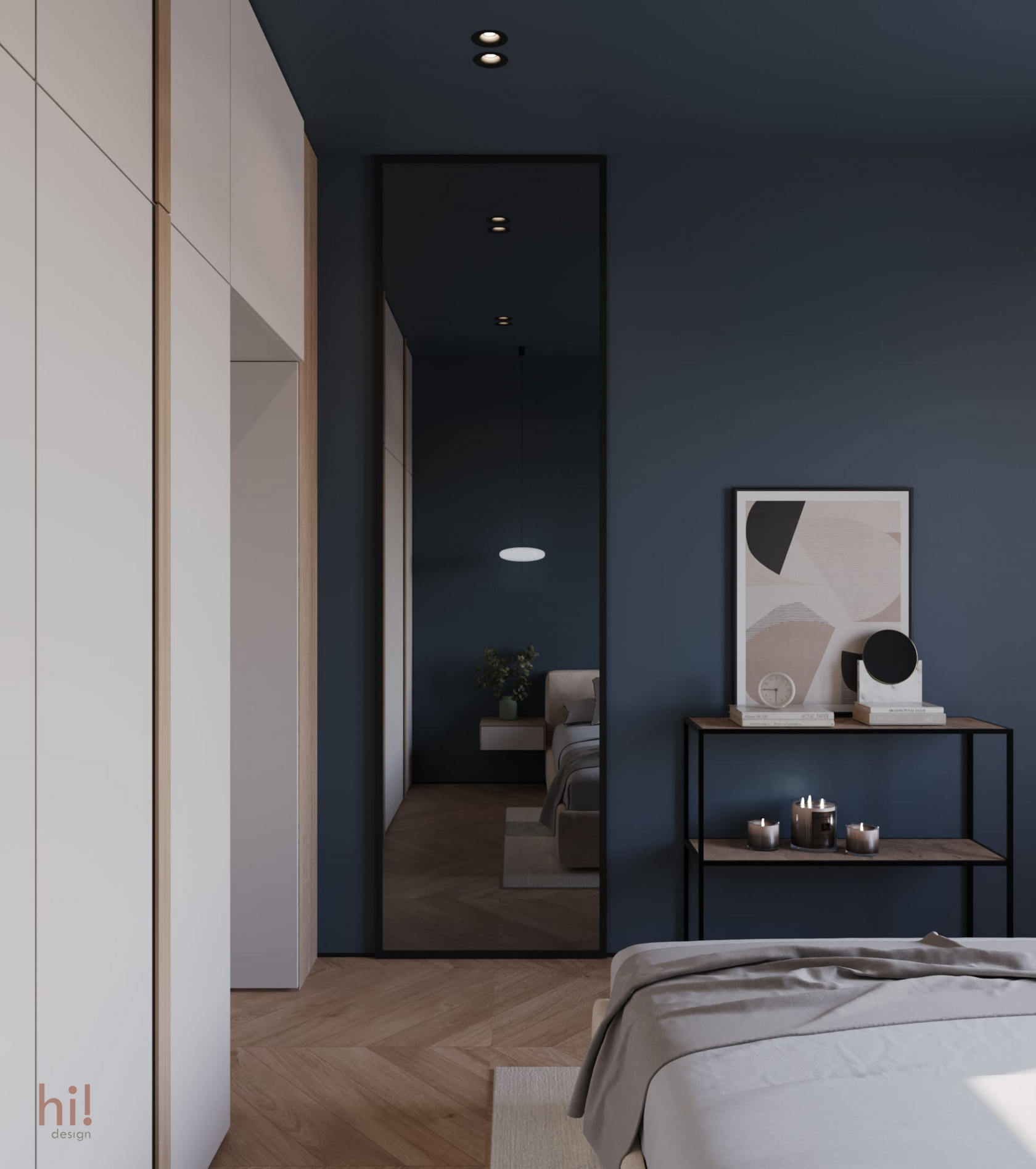 Однушка на намывной территории Васильевского острова, с потрясающим видом на море. В интерьере использованы любимые цвета заказчицы - шалфеевый, синий, пыльно-розовый. Особенно атмосферной получилась спальня, с окрашенными в глубокий синий цвет стенами и потолком.